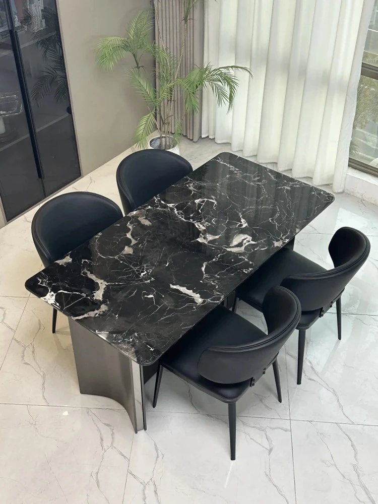 モダンでシンプルな高級感漂う、軽やかな天然大理石のブラックローズ長方形ダイニングテーブル。洗練されたデザインで、おしゃれな食卓を演出。家庭での特別なひとときをお楽しみください。